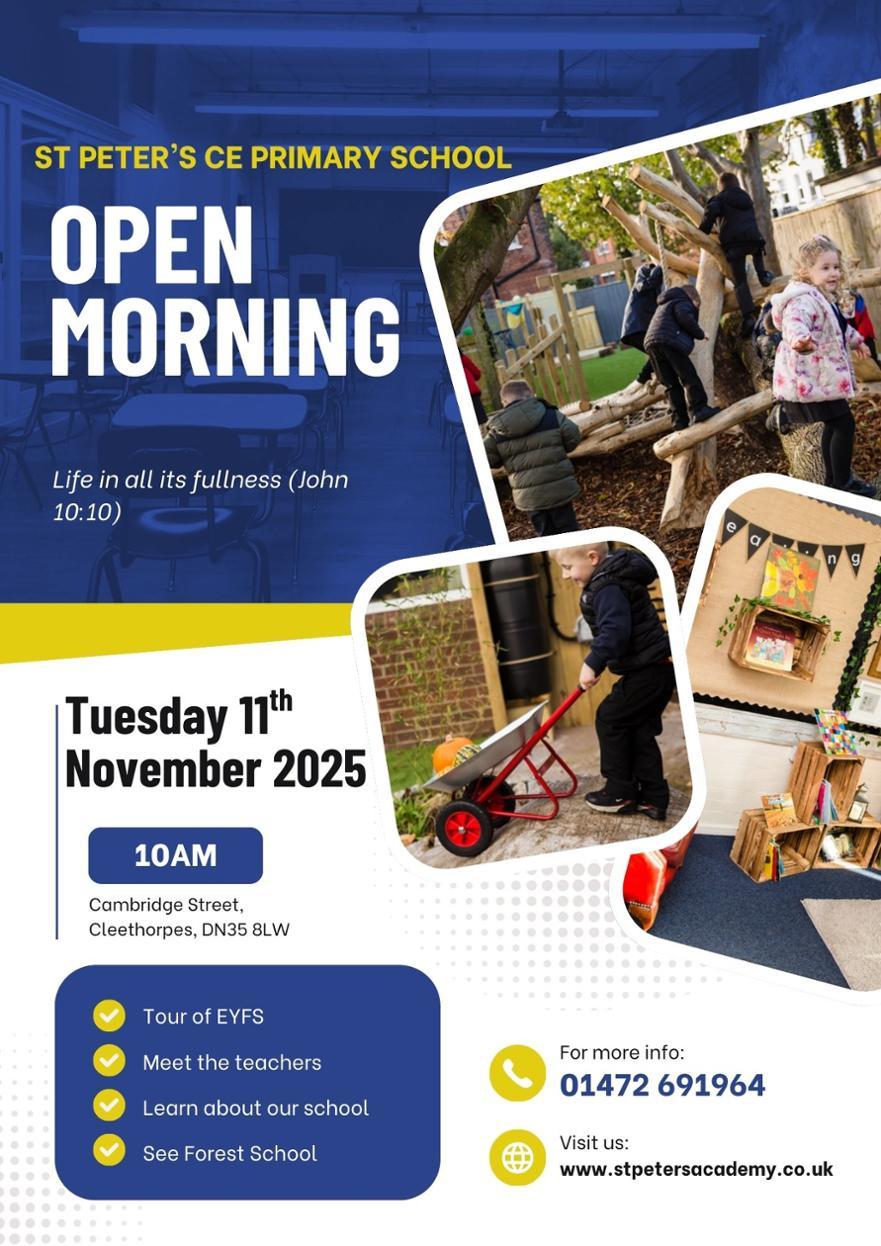 If you would like more information or require a paper copy of any information on our school website you are very welcome to contact us, by phone (01472 691964), by email (enquiries@stpeters.laat.co.uk) or in person at the address below.